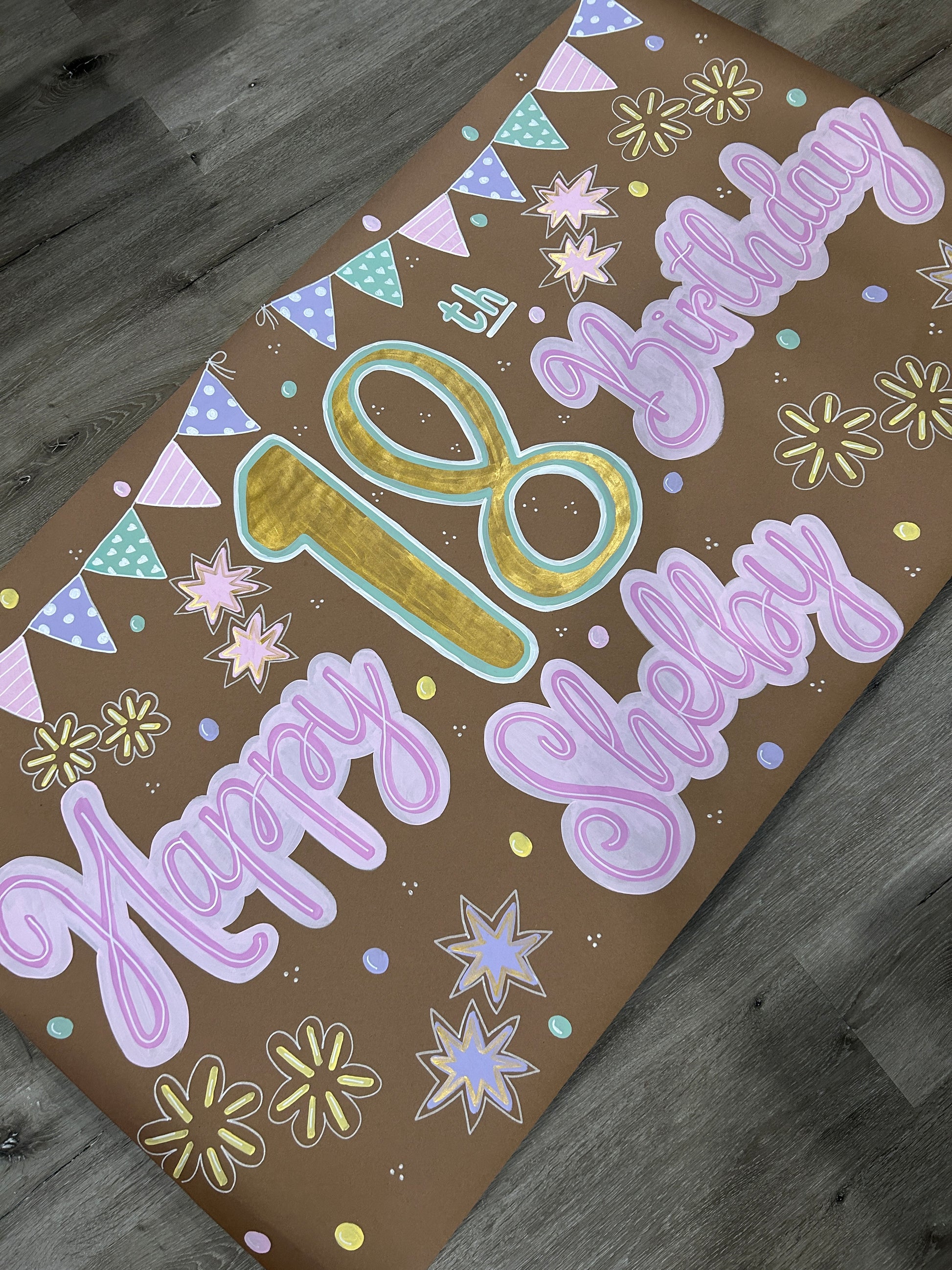 Make their milestone moment unforgettable with our hand-painted 18th Birthday banner. Each letter and design is carefully painted by hand, adding a unique, personal touch. Perfect for indoor or outdoor celebrations, ideal for photos, party backdrops, or hanging above a dessert table. Whether you're going for vintage vibes or a laid-back, artistic look, this custom banner brings heartfelt flair to the big milestone. Celebrate the big 1-8 in a unique, handmade way!